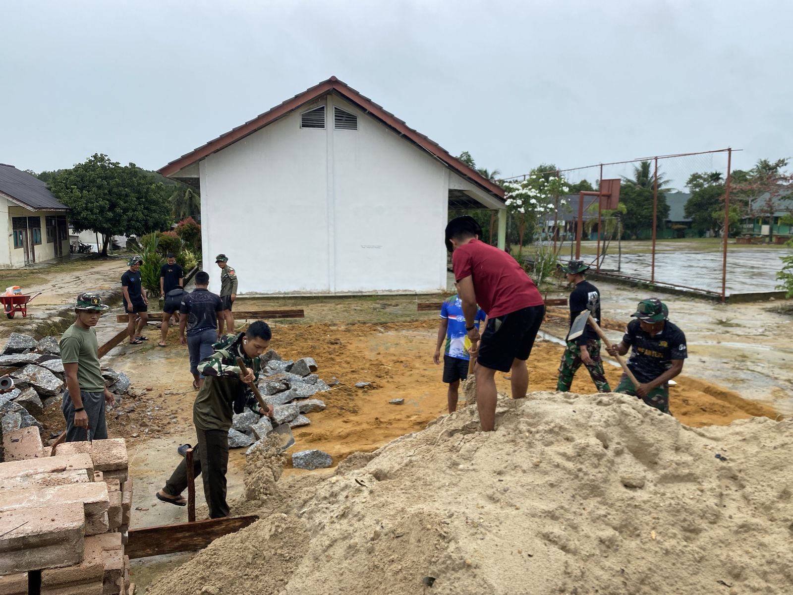 Dalam proses pembangunannya, anggota TNI dari Kodim dan Batalyon bekerja sama dengan masyarakat dan tenaga pendidik, bahu-membahu menyelesaikan tahap demi tahap pembangunan aula. Kehadiran para prajurit TNI ini juga mendapat apresiasi dari pihak sekolah dan warga setempat.