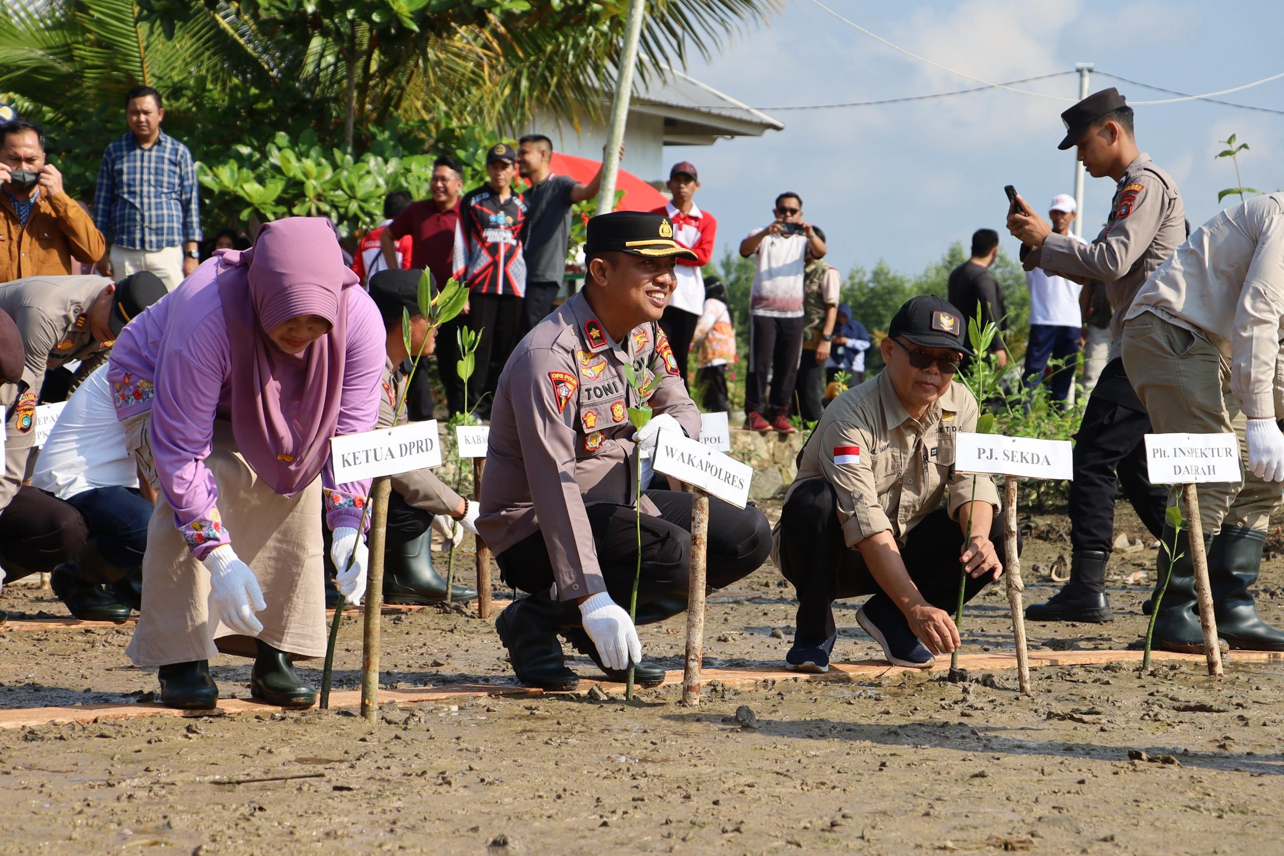 Kolaborasi Lingkungan di Kurau: Kapolres Bangka Tengah Hadiri Aksi Pembongkaran dan Penanaman Mangrove