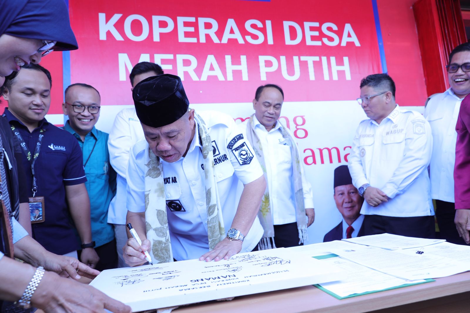 Dalam kesempatan tersebut, juga dilakukan penandatanganan kesepakatan bersama sebagai bentuk komitmen pengembangan Koperasi Merah Putih di Bangka Belitung. Kegiatan ini dihadiri oleh Bupati Bangka Tengah Alghafry Rahman, Wakil Bupati Efriandi, serta stakeholder strategis seperti PT Pos Indonesia, Bulog, PT BRI, Kimia Farma, PT Patraniaga, PT Pupuk Indonesia, dan LPDB-KUMKM.