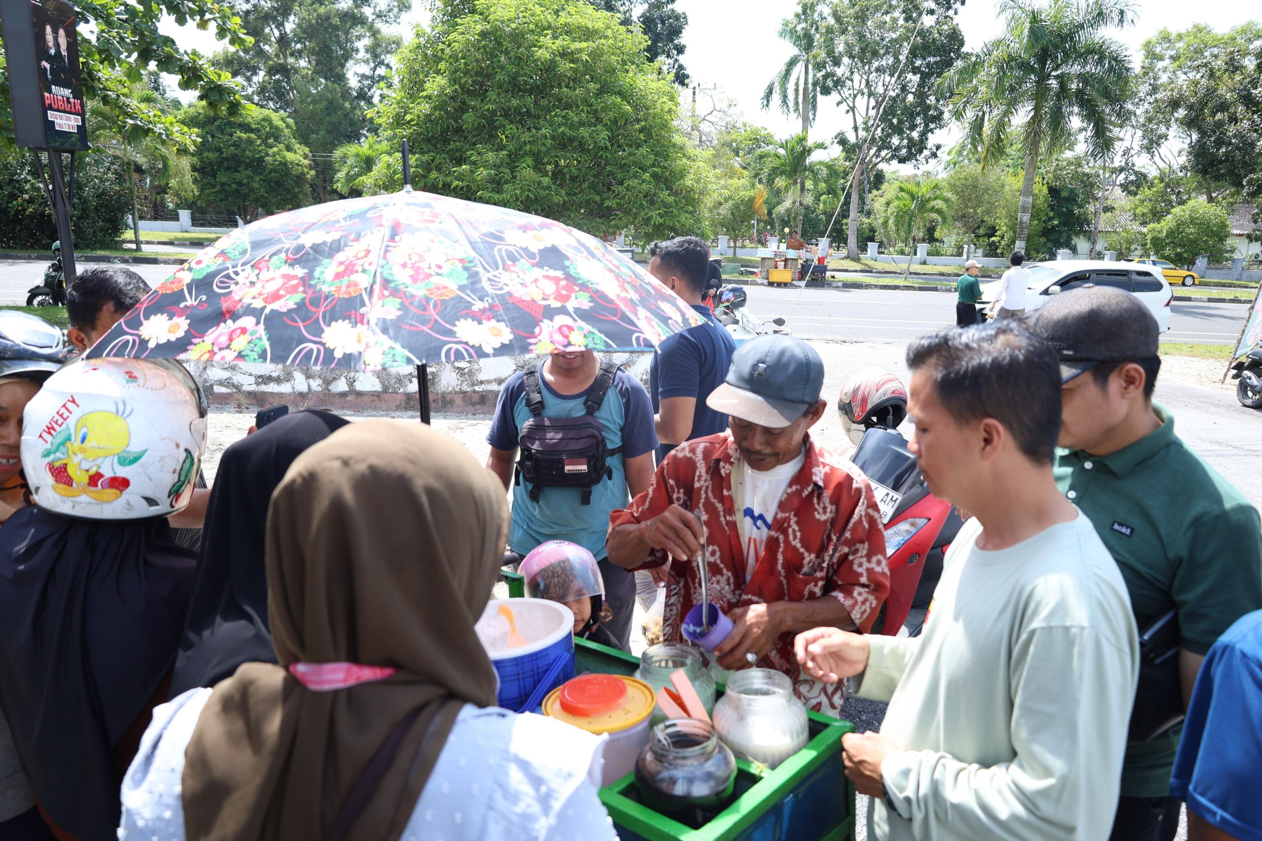 Kapolda yang tampak bersama Pak De, langsung memanggil para pedagang lain serta pengunjung Bazar untuk menikmati es bubur sumsum.