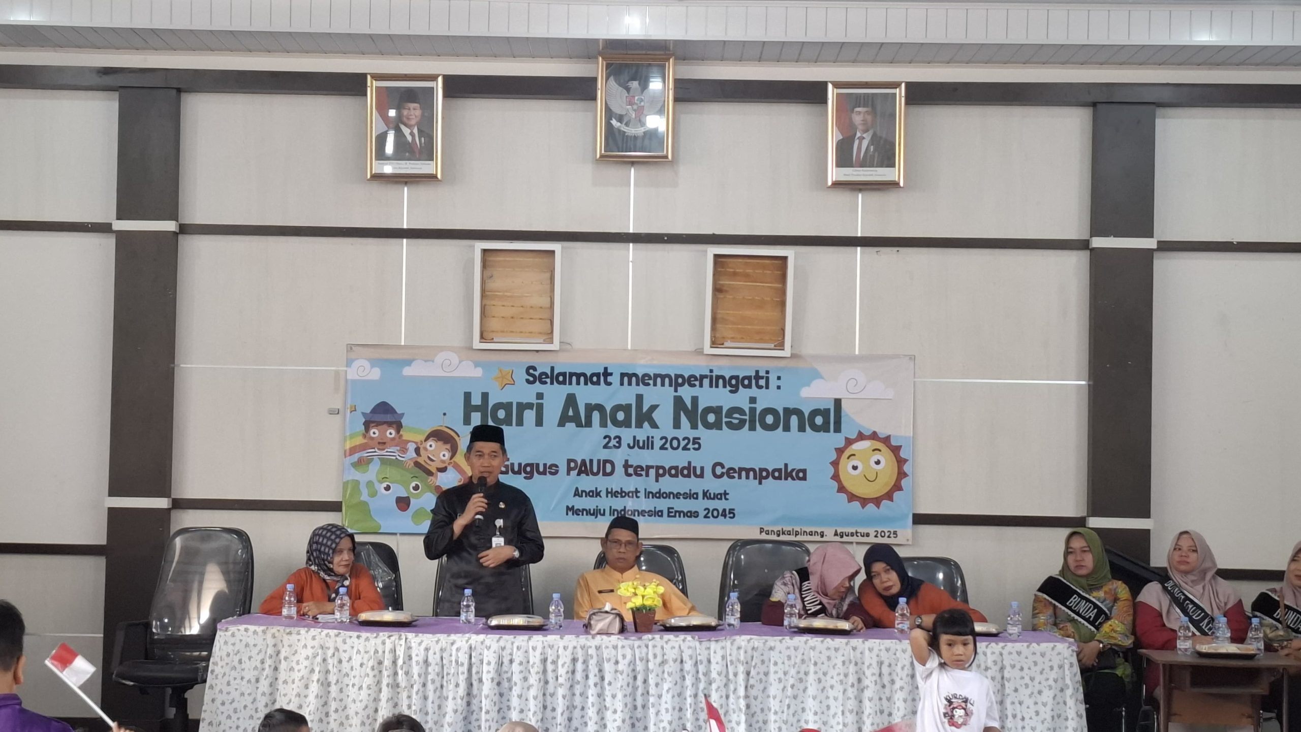 Pangkalpinang, viralperistiwa.com — Dalam rangka memperingati Hari Anak Nasional (HAN) 2025, Gugus PAUD Terpadu Cempaka Kecamatan Gabek menggelar acara bertema “Anak Hebat Indonesia Kuat Menuju Indonesia Emas 2045” di Aula Rapat Kantor Kecamatan Gabek, Kamis (7/8).