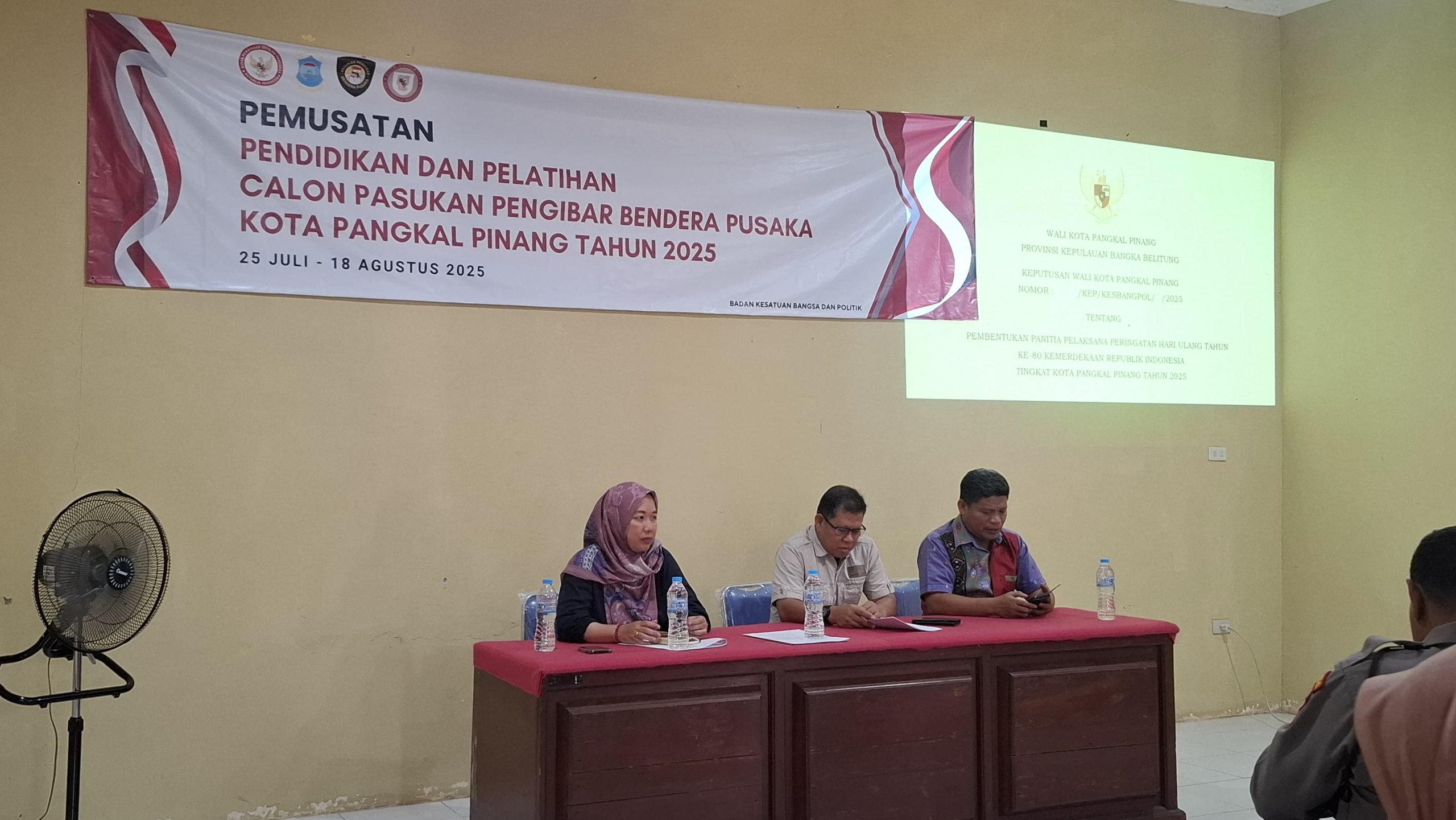Kepala Bidang Politik Dalam Negeri dan Organisasi Masyarakat (Kesbangpol) Kota Pangkalpinang, Marini, menyampaikan bahwa saat ini proses administrasi masih menunggu tanda tangan dari Penjabat Wali Kota. Ia menegaskan pentingnya percepatan agar seluruh persiapan dapat segera dilaksanakan.