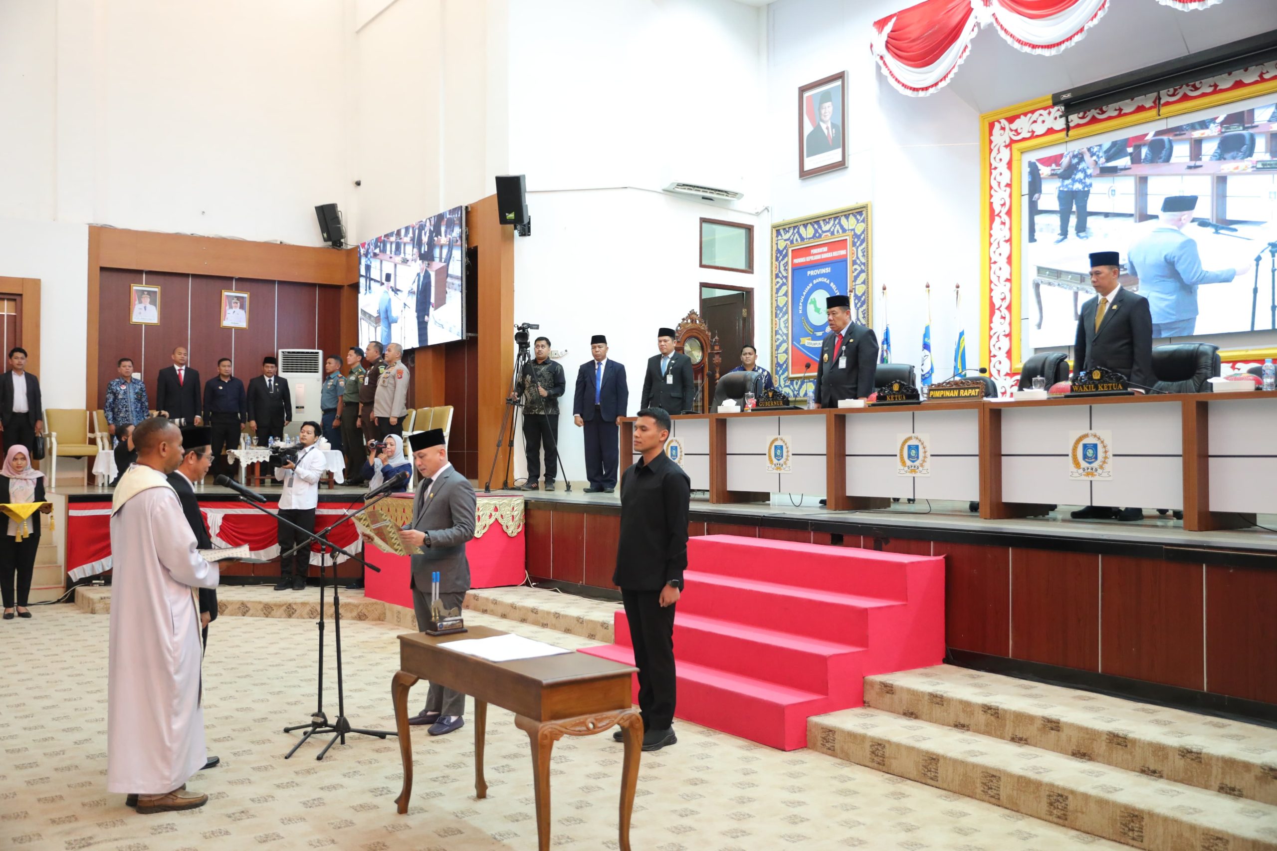 “Saya atas nama pribadi dan Pemerintah Provinsi menyampaikan selamat kepada Ir. Agung Setiawan sebagai pengganti antar waktu DPRD Babel,” ujar Gubernur Hidayat Arsani.