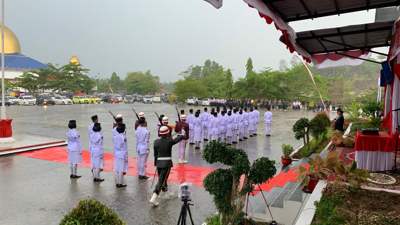 Hujan Deras Tak Patahkan Semangat Paskibraka Padang Pariaman Turunkan Bendera Merah Putih