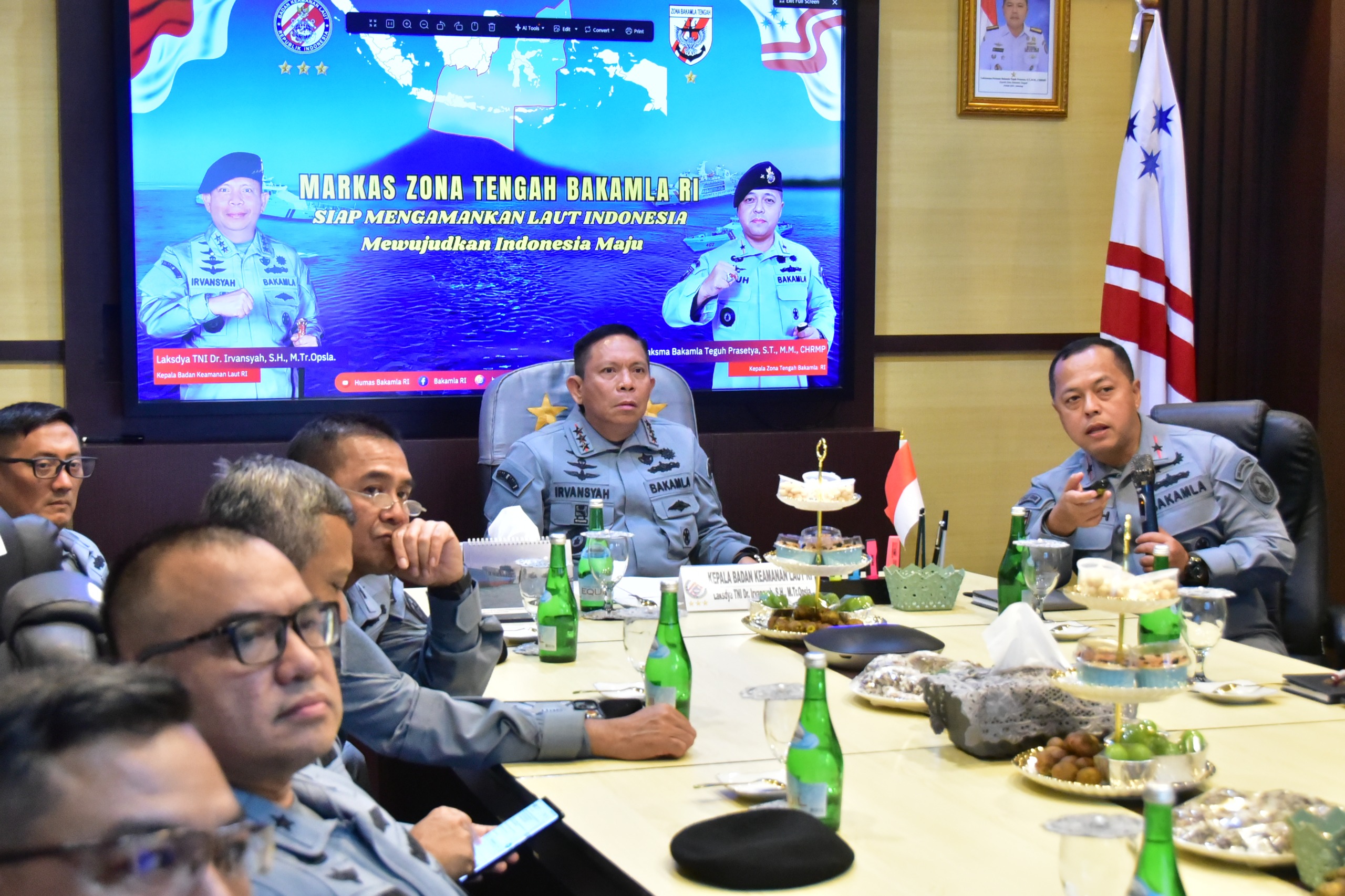 Agenda kegiatan pertama, Kepala Bakamla RI memberikan Pengarahan di hadapan personel Zona Tengah yang dilaksanakan secara hybrid, diikuti oleh personel kantor zona, stasiun, serta kapal negara yang berdinas di wilayah ini. Kegiatan diawali dengan paparan kinerja oleh Laksma Bakamla Teguh Prasetya, yang memaparkan capaian program, tantangan operasional, dan kebutuhan penguatan sarana prasarana.