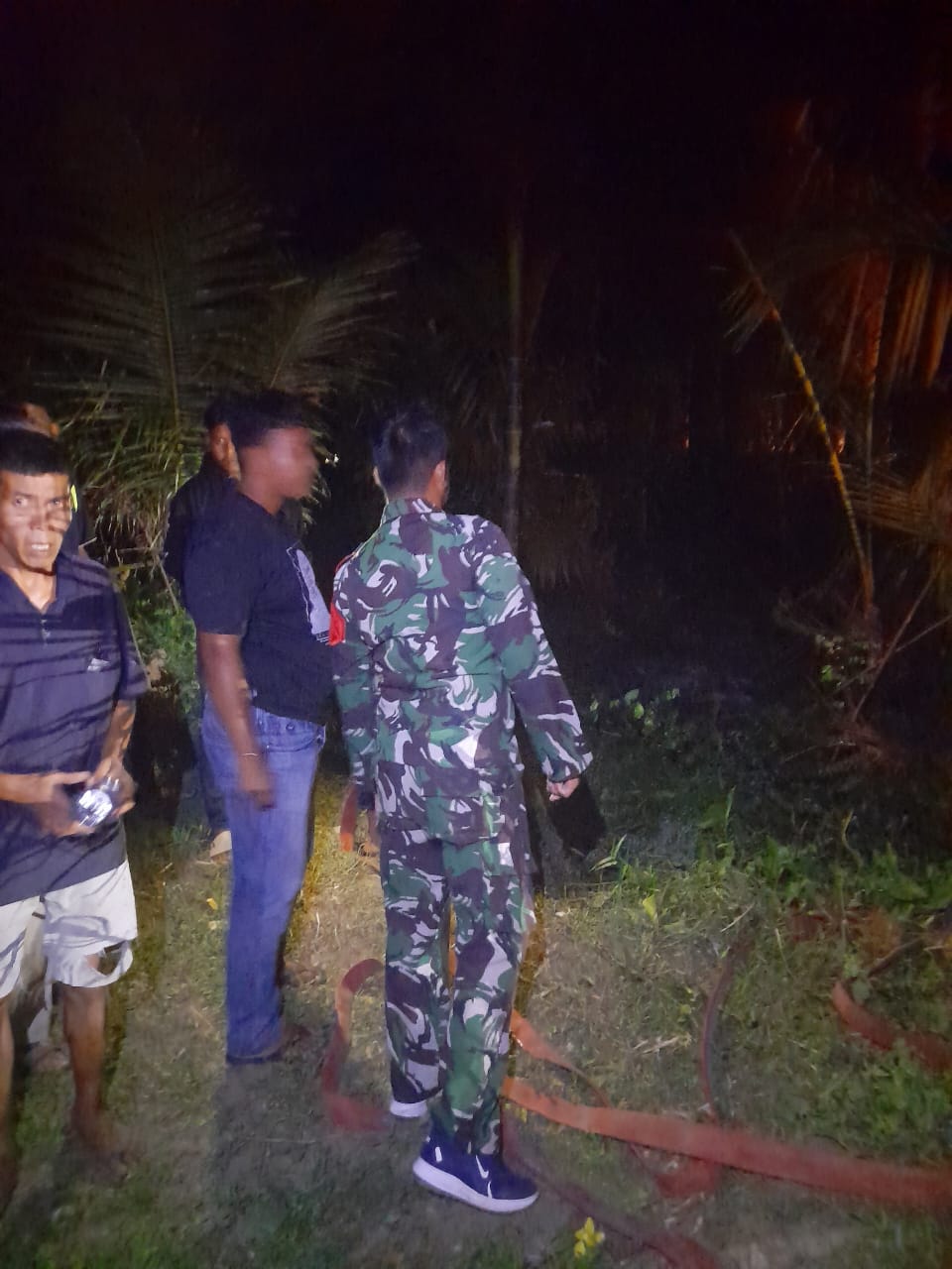 Saling Bahu Membahu Babinsa 01/Pariaman dan Pemadam Kebakaran Beserta Warga di Wilayah Binaan Berhasil Padamkan Api yang Membakar Lahan Gambut