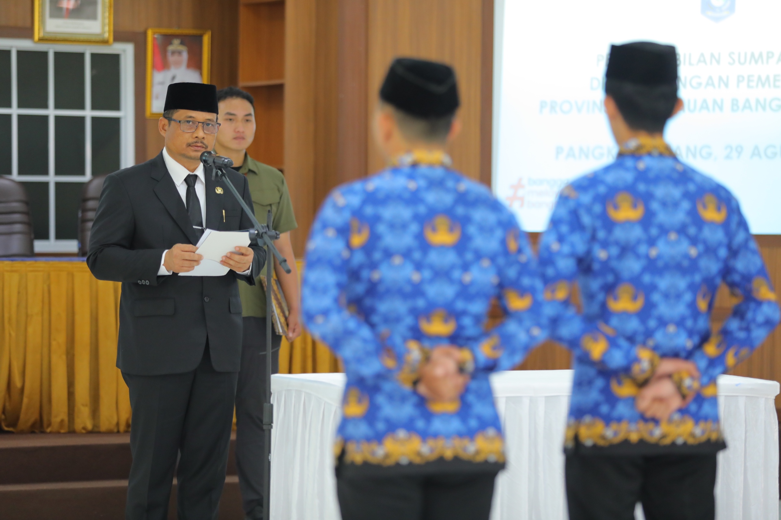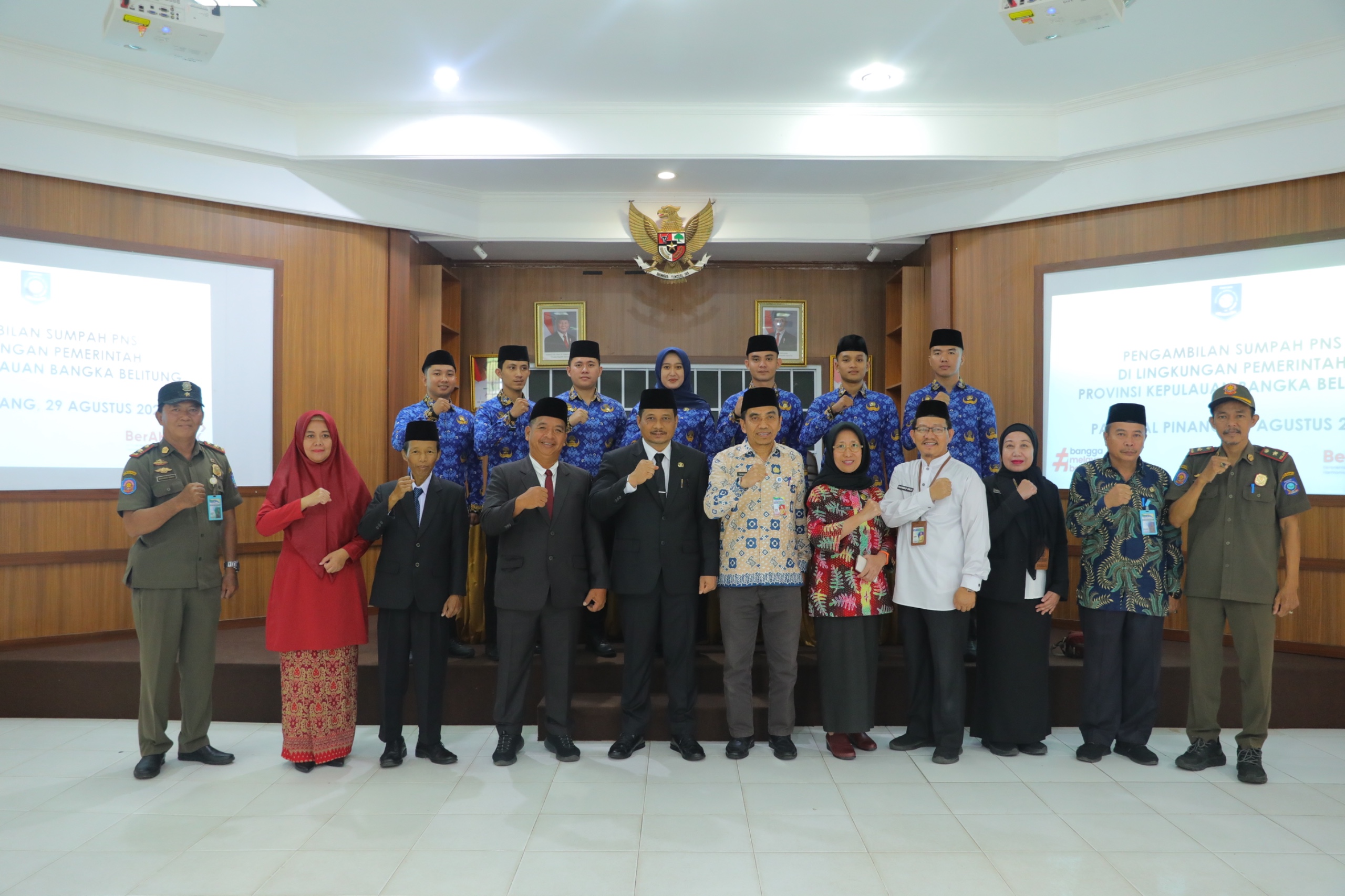 Kegiatan yang tertuang dalam Surat Keputusan Nomor 100.3.3.1/359/BKPSDMD/2025 tanggal 28 Agustus 2025 ini dipimpin oleh Penjabat (Pj) Sekretaris Daerah Provinsi Babel, Fery Afriyanto, mewakili Gubernur Hidayat Arsani. Pj Sekda Fery yang sekaligus mengambil sumpah dan membacakan kata-kata pelantikan para PNS baru. Turut hadir mendampingi, Plt Kepala BKPSDMD Babel serta pejabat terkait di lingkungan Pemprov Babel.