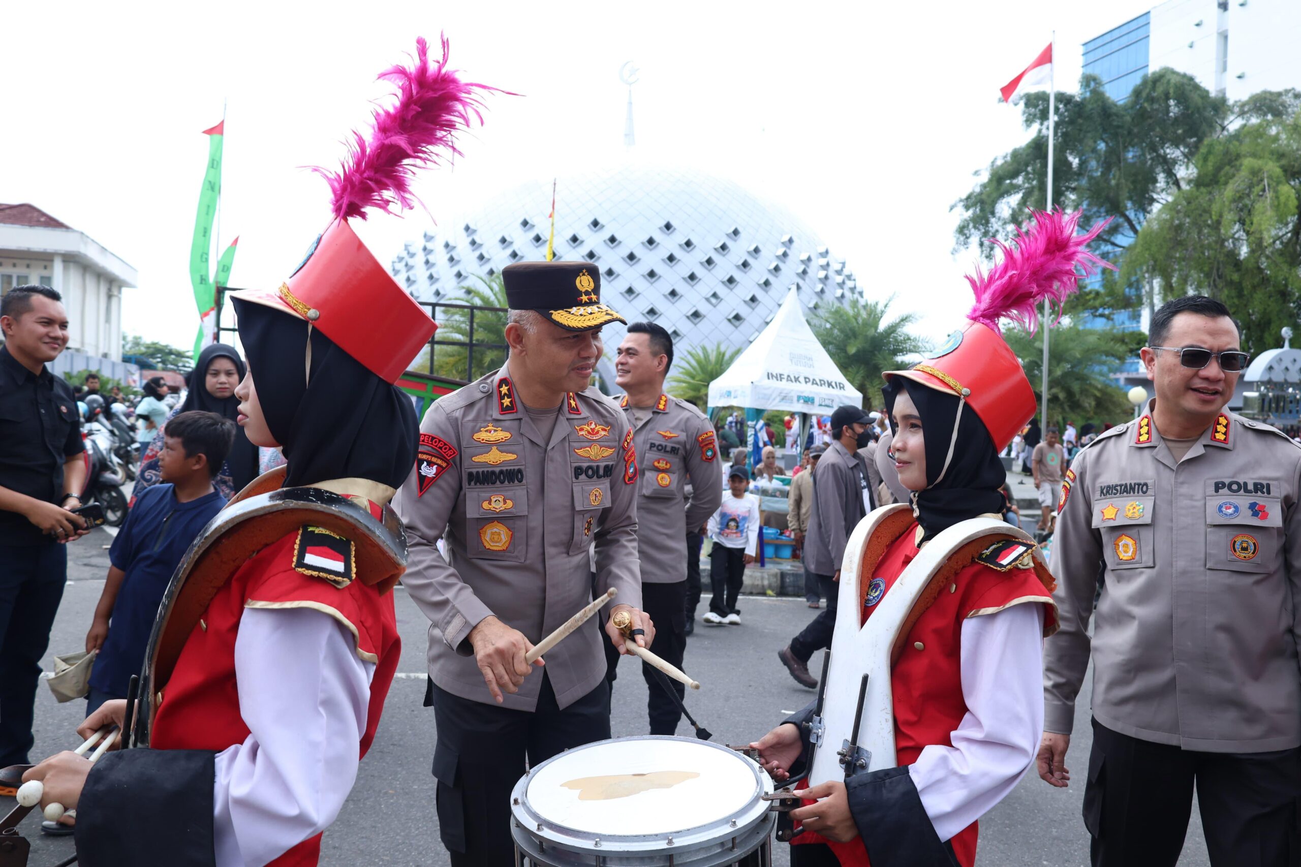 Didampingi beberapa Pejabat Utama, Irjen Pol Hendro berjalan menerobos kerumunan seraya menyapa masyarakat yang hadir. Dirinya juga terlihat melayani beberapa masyarakat yang ingin berswafoto.