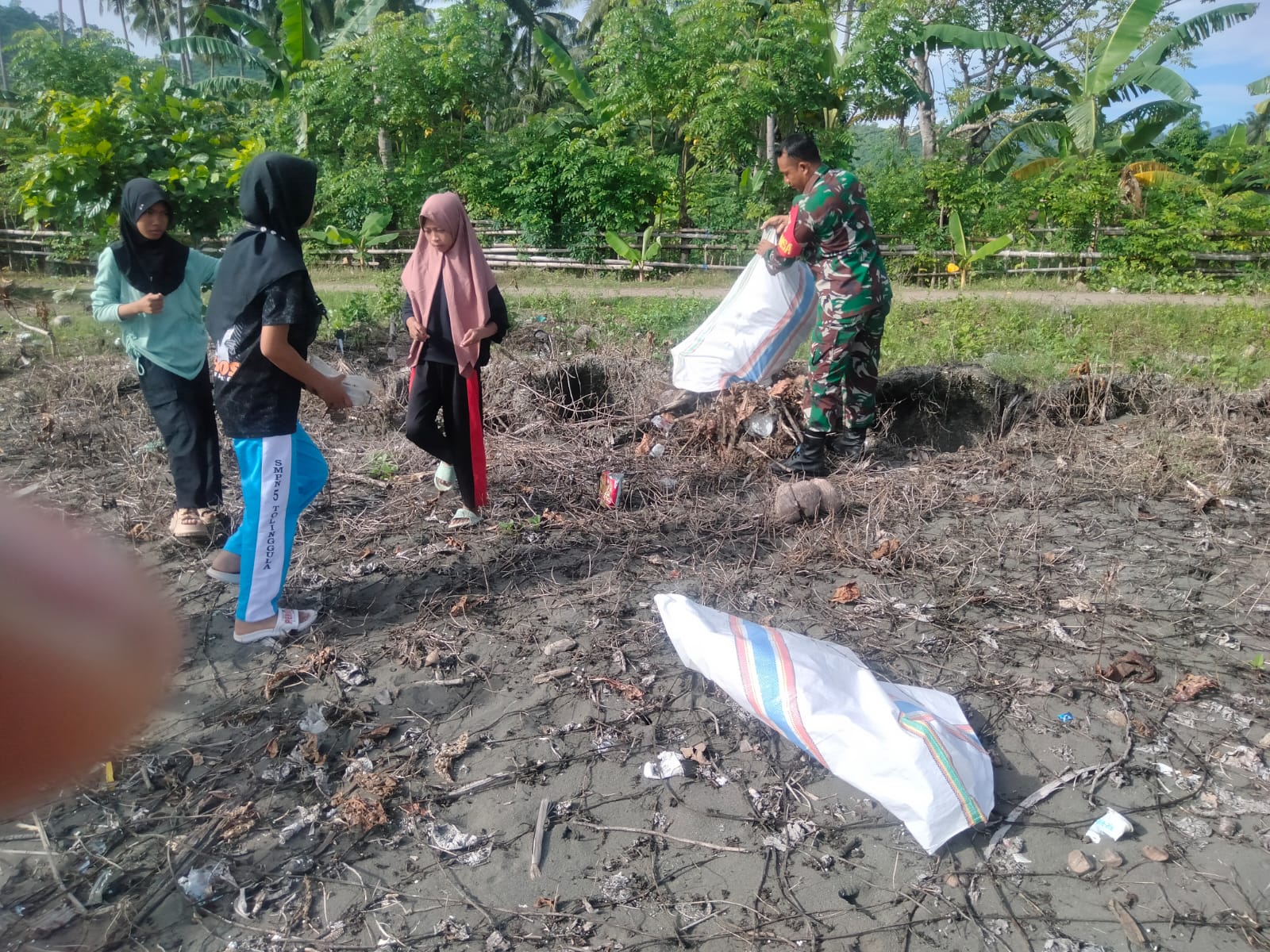 Babinsa Koramil 1314-03/Sumalata Gelar Aksi Bersih Pantai di Desa Tolinggula