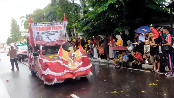 Satpol PP Babel Meriahkan Pawai Kendaraan Hias HUT RI ke-80