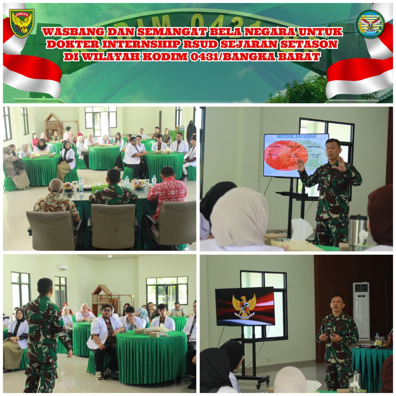 Bangka Barat, viralperistiwa.com – Letkol Inf Kemas Muhammad Nauval.,M.Han Dandim 0431/Bangka Barat melaksanakan kegiatan Wawasan kebangsaan dan semangat bela negara untuk dokter intership yang bertugas di RSUD Sejiran Setason Kabupaten Bangka Barat .bertempat di Aula Paraduta Kodim 0431/Bangka Barat. Kamis ( 11/09/2025 ).
