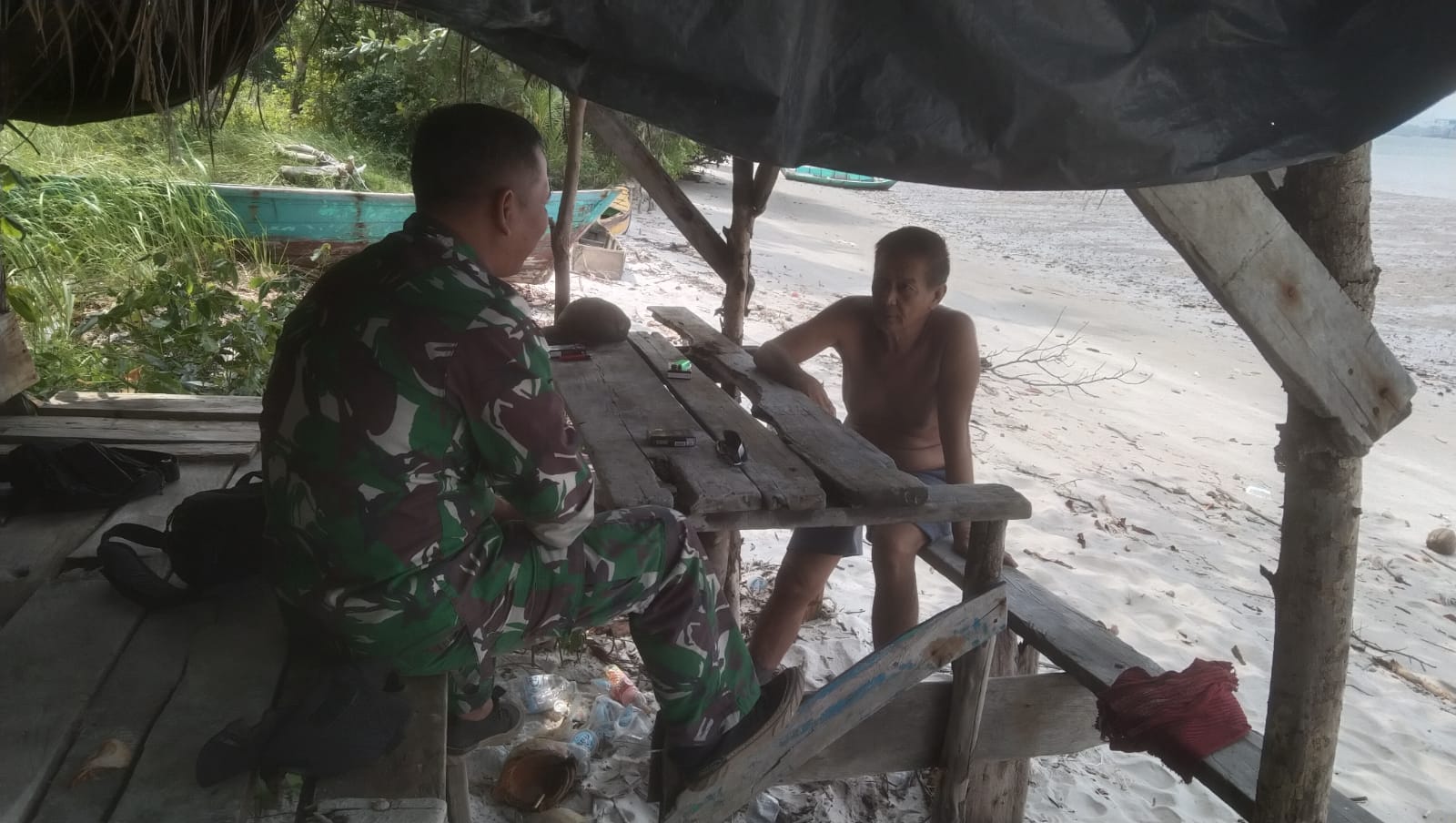 Bangka Barat, viralperistiwa.com – Sertu Joko Hariyadi, Babinsa Koramil 431-01/Jebus, melaksanakan komunikasi sosial (Komsos) bersama masyarakat, yaitu Bapak Yanto yang sehari-hari bekerja sebagai nelayan tarik puket. Kegiatan berlangsung di Desa Bakik, Kecamatan Parittiga, Kabupaten Bangka Barat, Selasa (16/09/2025).
