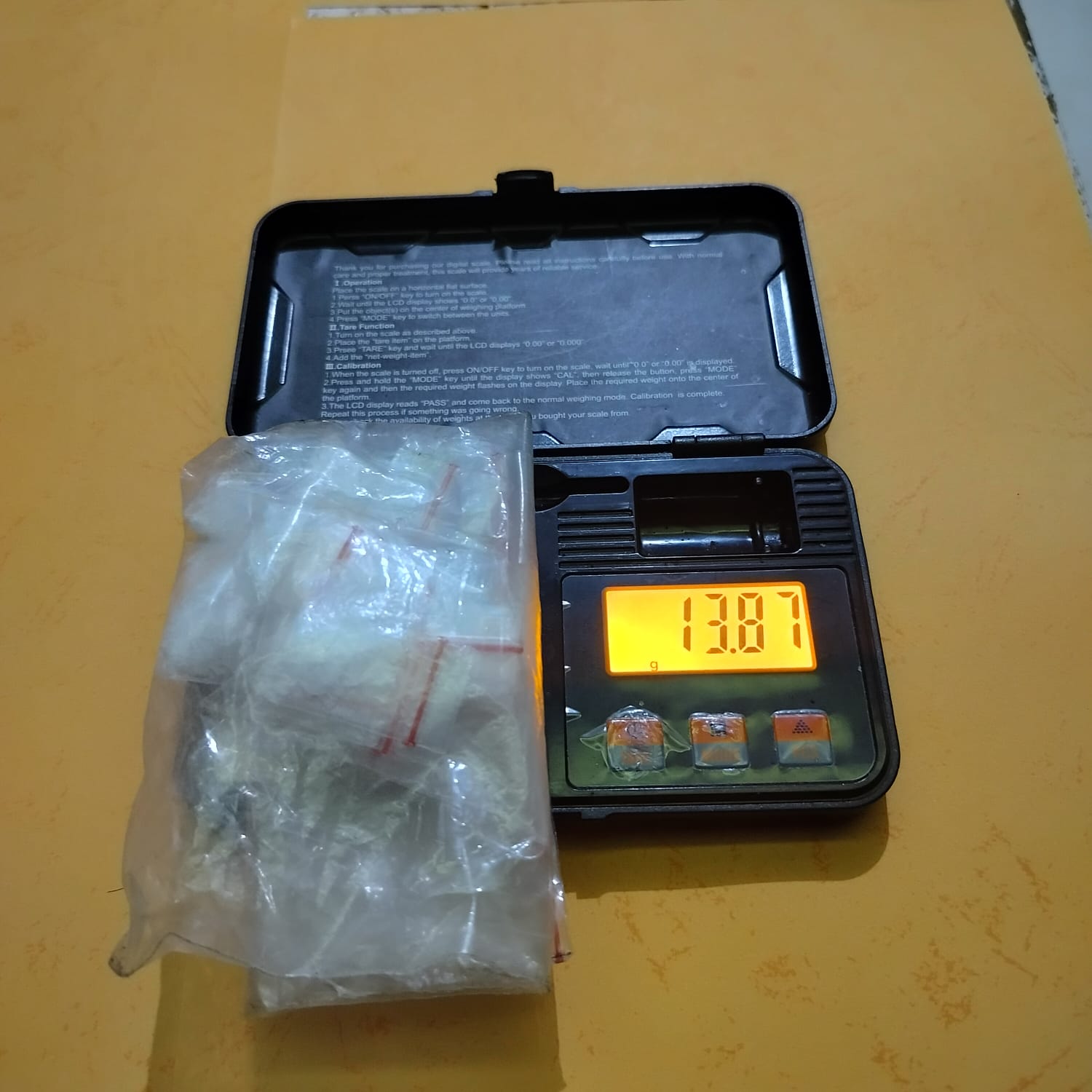 Barang bukti yang disita di antaranya lima paket shabu ukuran besar, satu plastik berisi shabu ukuran besar, 18 paket shabu ukuran kecil, dua unit timbangan digital, dua unit handphone, 10 potongan pipet plastik, satu tas selempang hitam, serta satu unit sepeda motor Yamaha N-Max warna hitam tanpa nomor polisi.