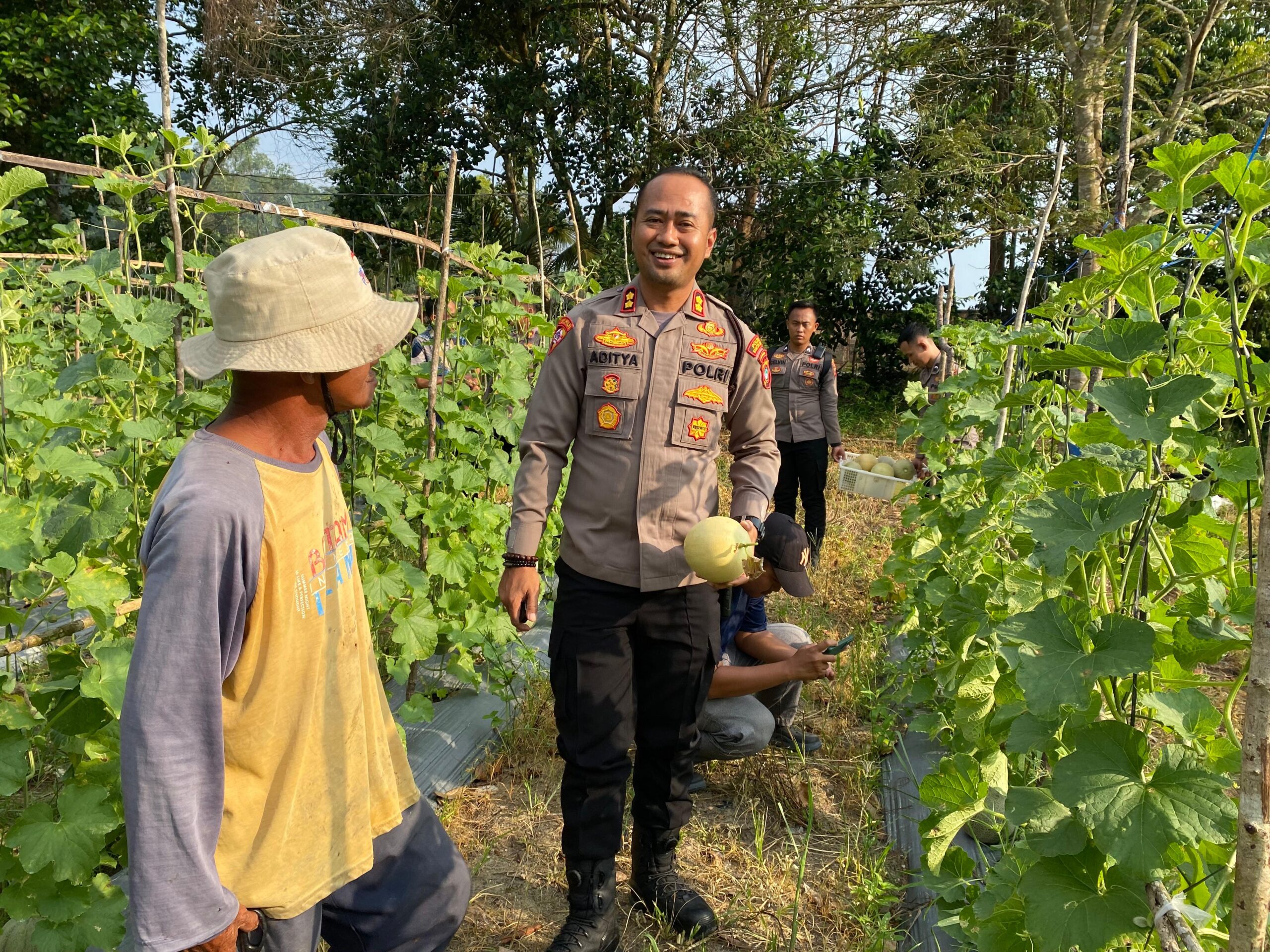 Kali ini, Kapolres datang bukan hanya untuk melihat hasil panen, tetapi juga mengajak masyarakat ikut merasakan sensasi panen melon bersama-sama.