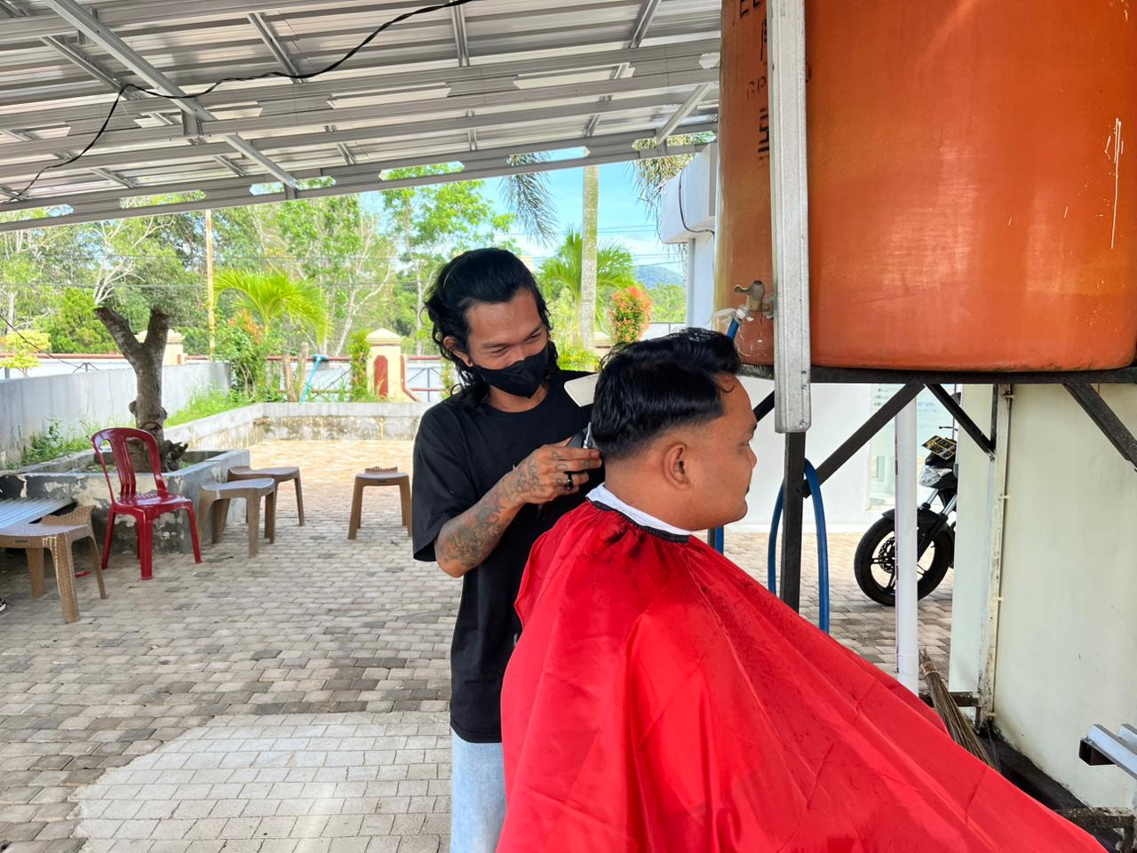 Kegiatan yang sudah berjalan selama empat pekan terakhir ini dilaksanakan di area belakang pos penjagaan pintu masuk Mapolres Bangka Barat. Seorang tukang cukur lokal asal Muntok bernama Fitra terlihat sibuk memangkas rambut para personel satu per satu dengan penuh ketelitian.