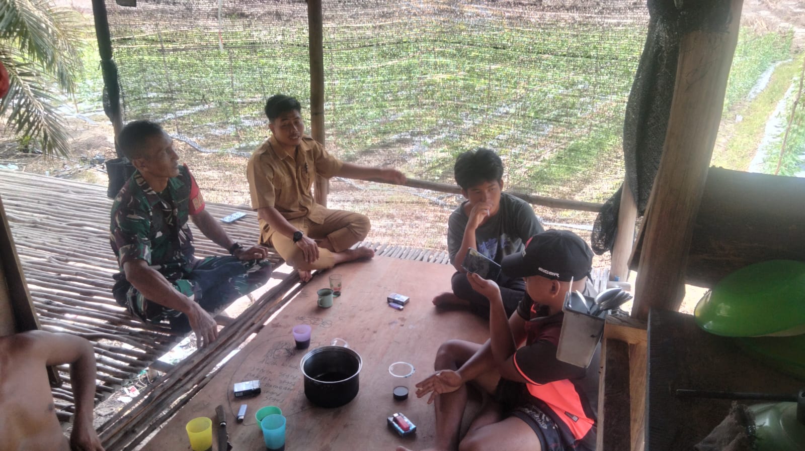 Jebus, viralperistiwa.com – Sertu Muhsin Alatas, Babinsa Koramil 431-01/Jebus Kodim 0431/Bangka Barat, melaksanakan kegiatan Komunikasi Sosial (Komsos) bersama perangkat desa dan para pekerja kebun sayur di Pondok Kebun milik BUMDes Desa Limbung, Jumat (24/10/2025).