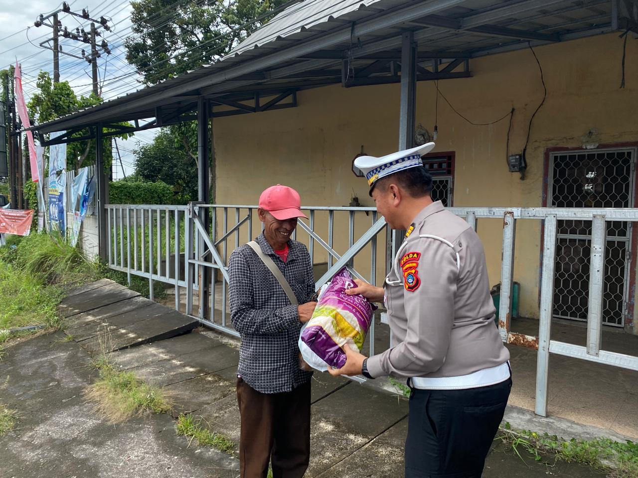 “Termasuk ada juga kita bagikan sejumlah paket sembako yang merupakan hasil dari sedekah personel kita di Ditlantas,”sambungnya.