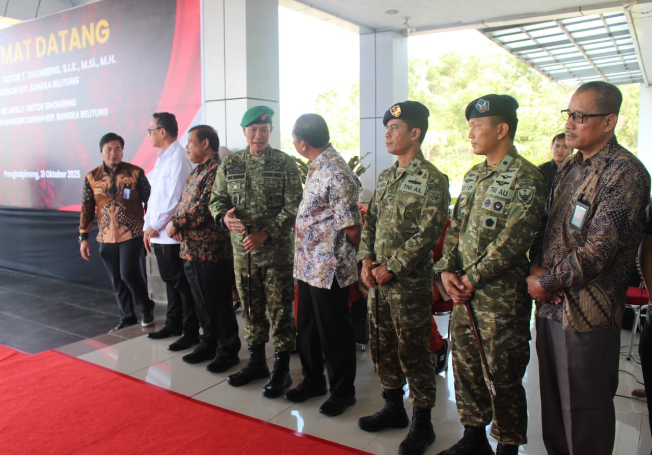 Pangkalpinang, viralperistiwa.com – Danrem 045/Gaya Kolonel Inf Nur Wahyudi, S.E., M.H., M.I.Pol menyambut datangan Kapolda Kepulauan Bangka Belitung Irjen Pol Dr.Viktor T. Sihombing, S.I.K., M.Si., M.H. di ruangan kedatangan VIP Bandara Depati Amir Pangkalpinang, Jumat (31/10/2025).