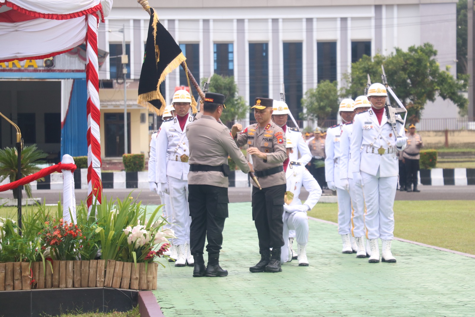 Pangkalpinang, viralperistiwa.com – Polda Bangka Belitung menggelar upacara serah terima pataka “Surakarya Manggala Satya” di halaman Mapolda, Jumat (31/10/25) siang.