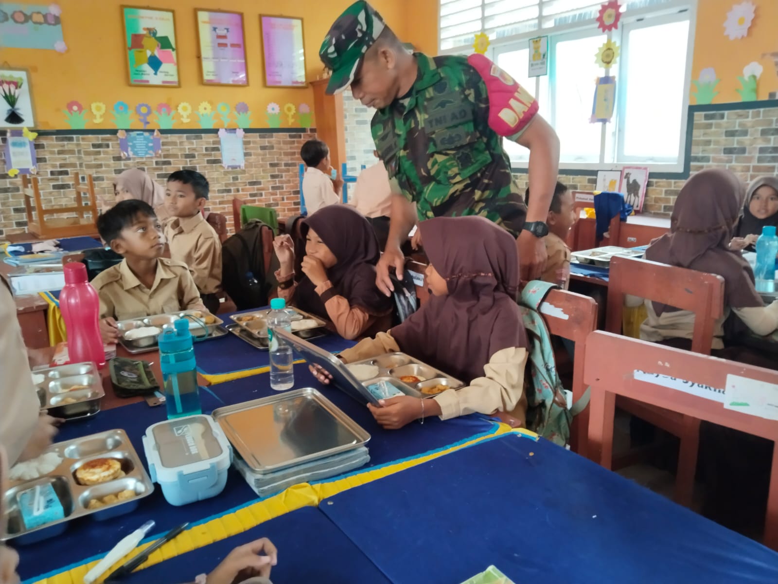 Babinsa Koramil 1314-01/Kwandang Dampingi Pendistribusian Makanan Bergizi Gratis di Sekolah