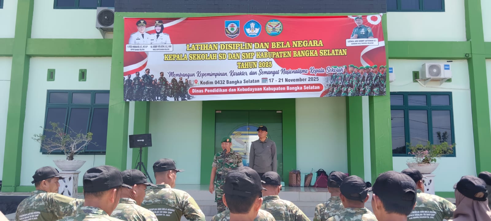 Bangka Selatan, exsekusinews.id – Komandan Kodim 0432/Bangka Selatan (Basel) Letkol Arh Sebmy Setiawan, S.T., resmi menutup kegiatan retreat Kepala Sekolah SMP dan SD se-Kabupaten Bangka Selatan yang digelar di Makodim 0432/Basel, Desa Bikang, Kecamatan Toboali, Jumat (21/11/2025).