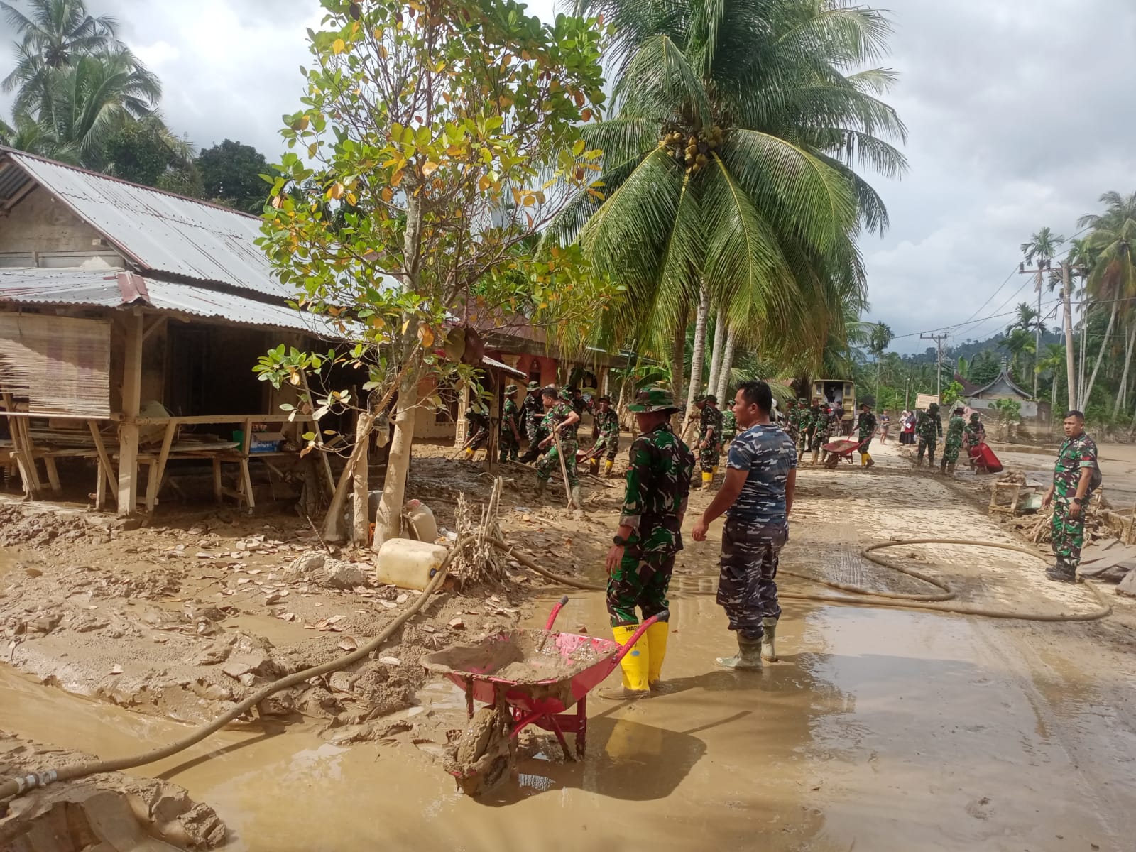 mengakibatkan beberapa rumah warga tertutup lumpur dan material bawaan arus. Melihat kondisi tersebut, Babinsa bersama masyarakat dan aparat nagari bergotong royong melakukan pembersihan agar rumah warga dapat segera dihuni kembali.
