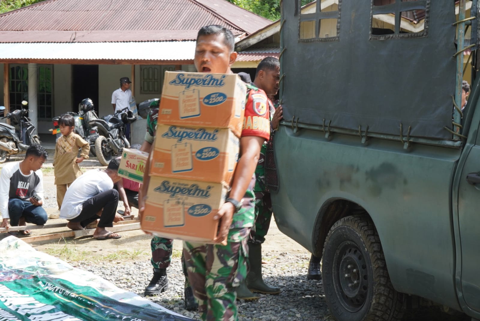 Sebanyak 6 titik lokasi sudah di salurkan oleh Kodim 0308/Padang Pariaman Adapun lokasi penyaluran bantuan meliputi Korong Sipisang Sipinang, nagari Aunduriang, Kec. Kayu Tanam, Korong Padang Lapai Salodako Nagari Lubuak, Kec. Kayu Tanam, Korong Banda Manggih, Nagari Kayu Tanam Kecamatan 2×11 Kayu Tanam, Korong Aia Bajau Nagari Sintuak Kecamatan Sintoga, Korong Nagari Aia Tajun Kecamatan Lubuk Alung, dan Korong Surantiah Nagari Lubuk Alung Kecamatan Lubuk Alung.