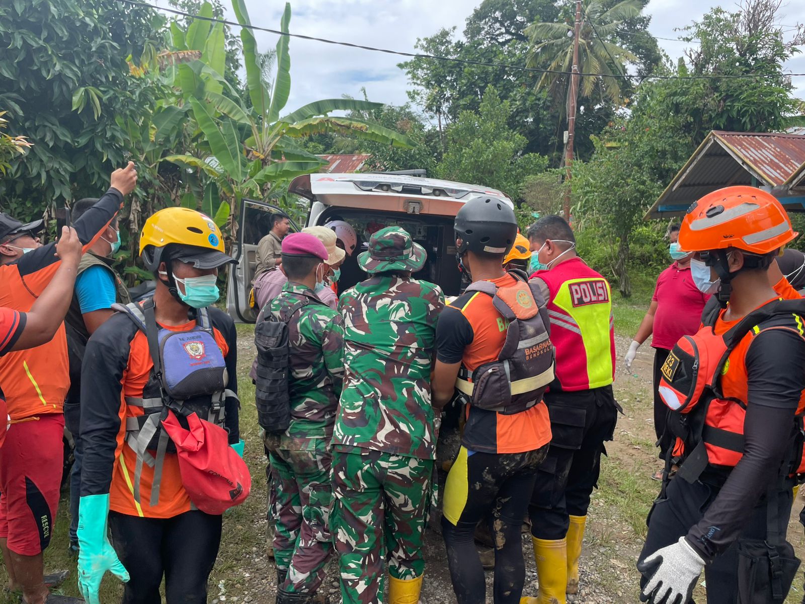 Mendapatkan laporan tersebut, Babinsa Sertu S.Z. Damorta bersama personel Marinir, Bhabinkamtibmas, serta tim Basarnas segera bergerak ke lokasi untuk melakukan proses evakuasi. Proses evakuasi mengalami kendala cukup berat karena kondisi mayat terjepit di antara gelondongan kayu besar yang terbawa arus banjir.