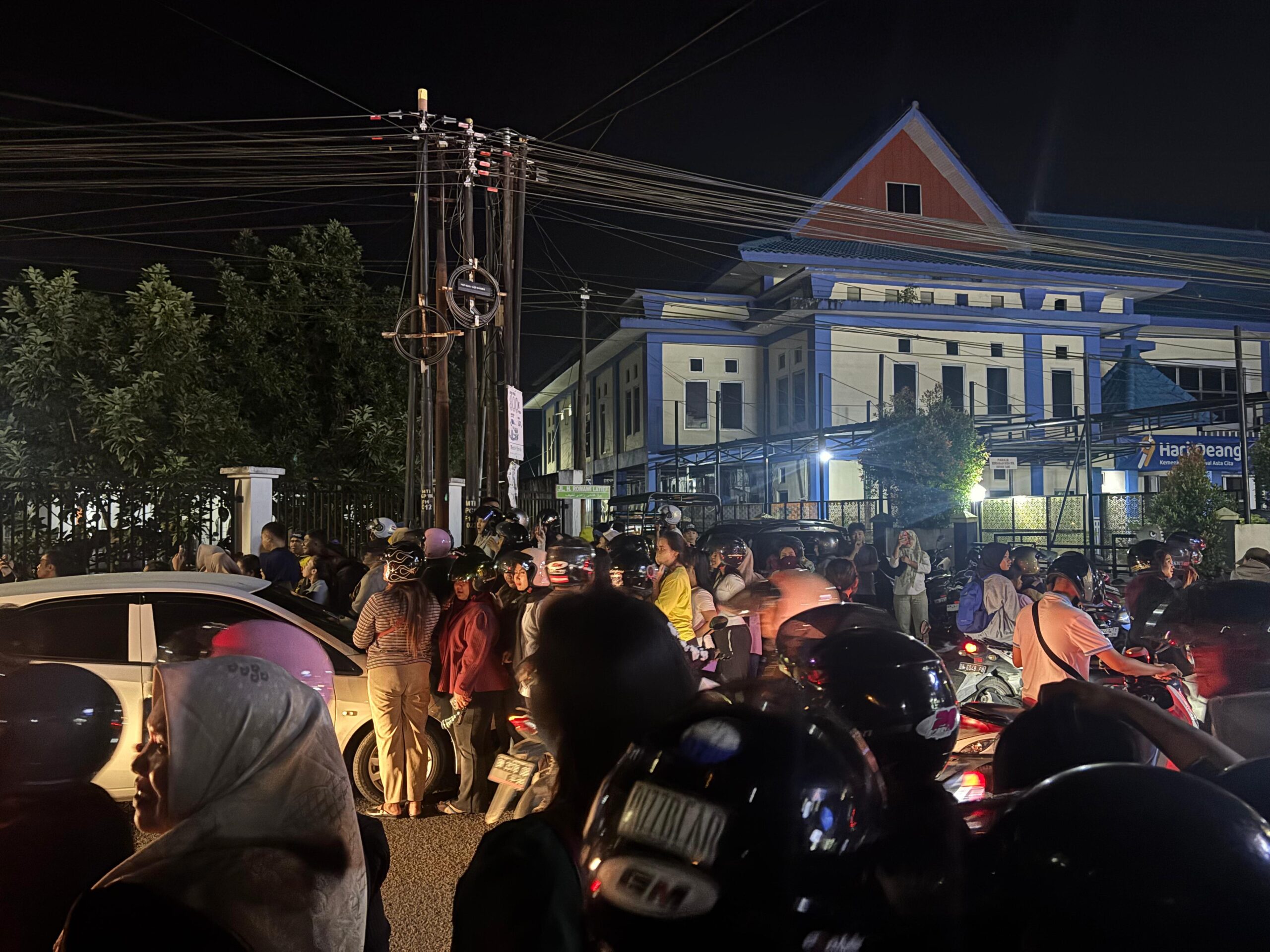 Ratusan warga pun memadati sekitar rumah dinas Kasatpol PP di Jalan Adhyaksa, Pangkalpinang. Sebagian mengikuti live TikTok, sebagian lain ingin menyaksikan langsung.