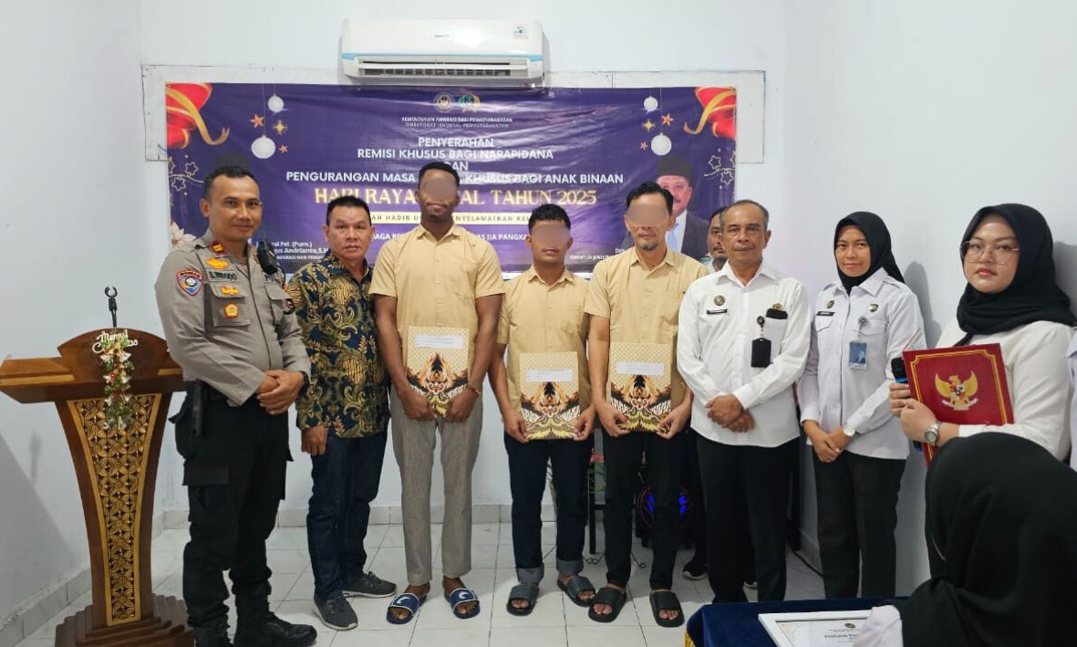 Pangkalpinang, viralperistiwa.com — Sebanyak 10 Warga Binaan Lembaga Pemasyarakatan (Lapas) Kelas IIA Pangkalpinang menerima Remisi Khusus (RK) Natal Tahun 2025 sebagai bentuk penghargaan Negara atas komitmen mereka dalam menjalani pembinaan. RK diserahkan saat peringatan Hari Raya Natal, Kamis (25/12), dengan rincian 15 hari kepada 2 orang, 1 bulan kepada 6 orang, 1 bulan 15 hari kepada 1 orang, serta 2 bulan kepada 1 orang.
