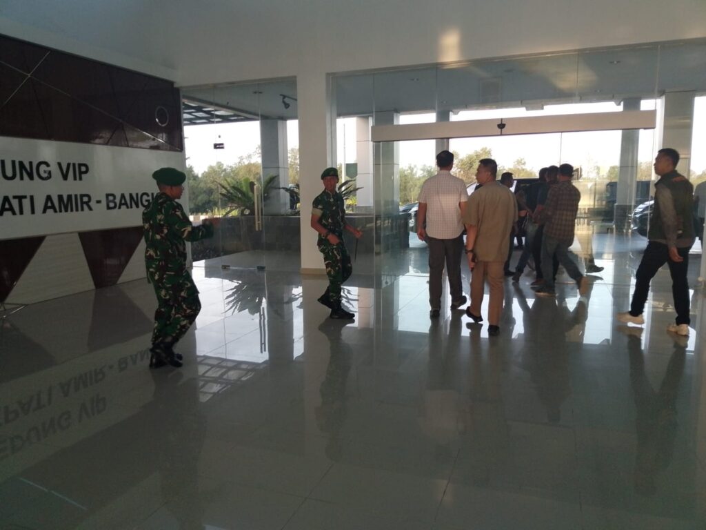 Setibanya di bandara, Bapak Kasdam II/Swj Brigjen TNI Iwan Ma’ruf zainudin, S.E.MM disambut langsung oleh Kasrem 045/Gaya, Kasiter Rem 045/Gaya, Danyonif 147/KGJ dan Dandim 0432/Basel Prosesi penyambutan di Bandara sebagai bentuk penghormatan atas kedatangan di Babel di lanjutkan Buka Bersama di RM Adox Pangkalpinang.
