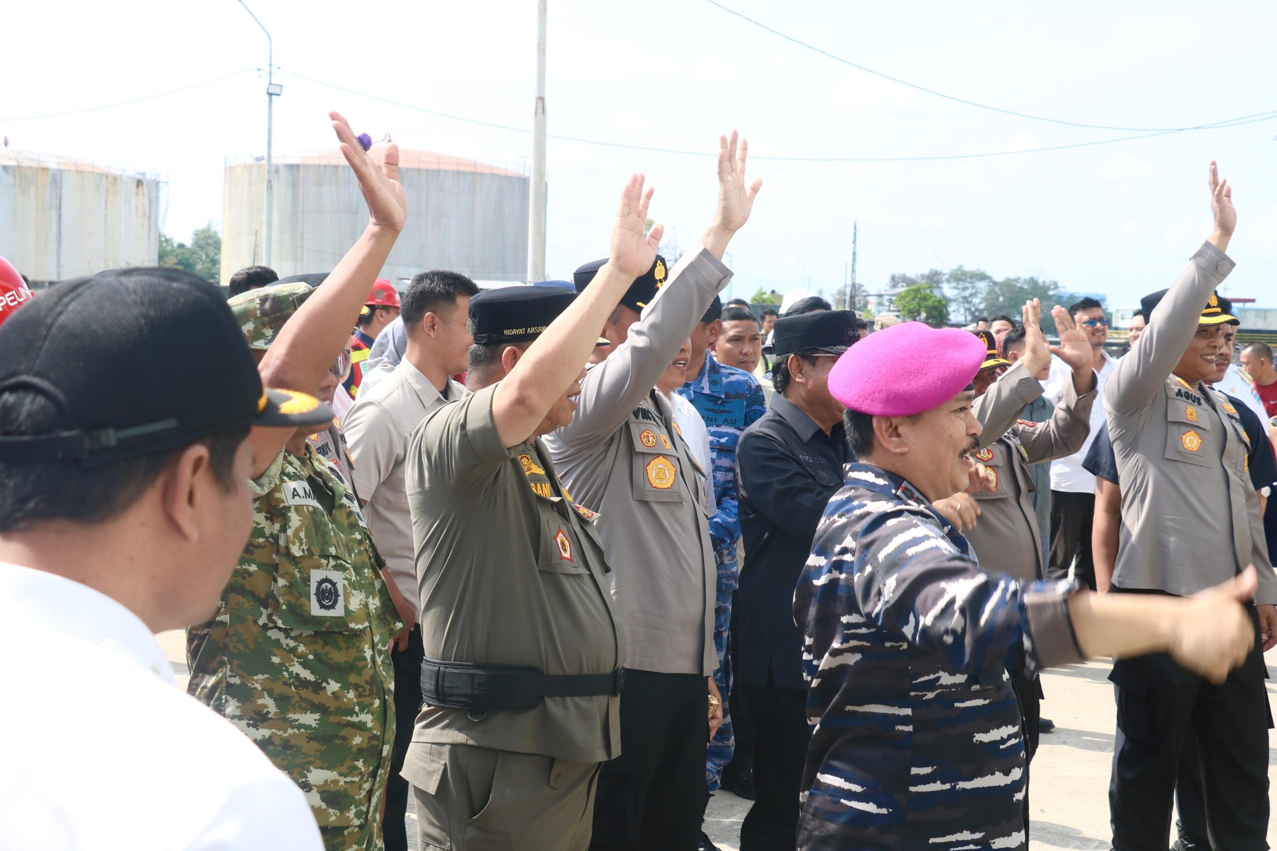 Dalam kesempatan itu, Gubernur Babel Hidayat Arsani dan Forkopimda Babel naik ke dalam KRI TNI AL guna memantau dan memberangkatkan para