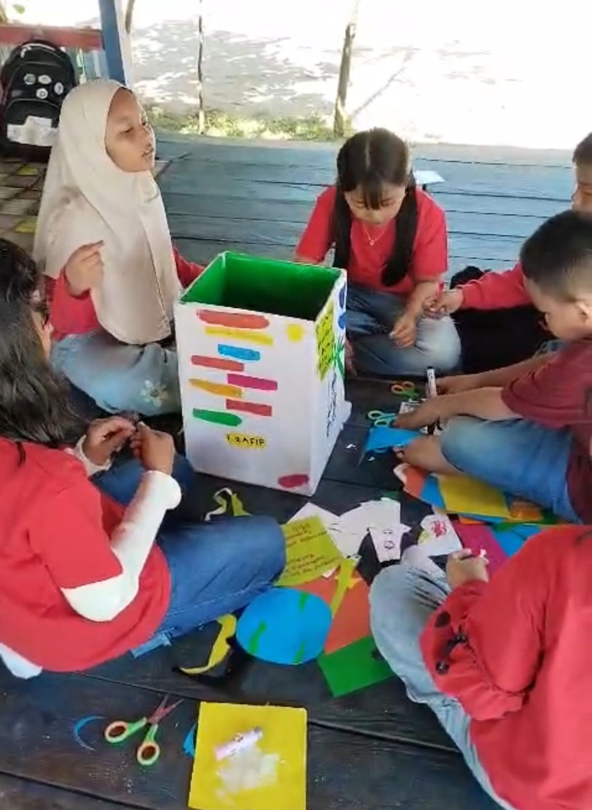 Kegiatan ini mengajarkan ketelitian, kesabaran, kerja sama, serta kepedulian terhadap lingkungan. Anak-anak belajar menyelesaikan tugas dengan fokus, menghargai ide teman, dan melihat hasil kerja sebagai simbol kebanggaan bersama. Kardus sederhana yang diubah menjadi kotak sampah menjadi bukti nyata bahwa kreativitas dapat bersinergi dengan pendidikan lingkungan.